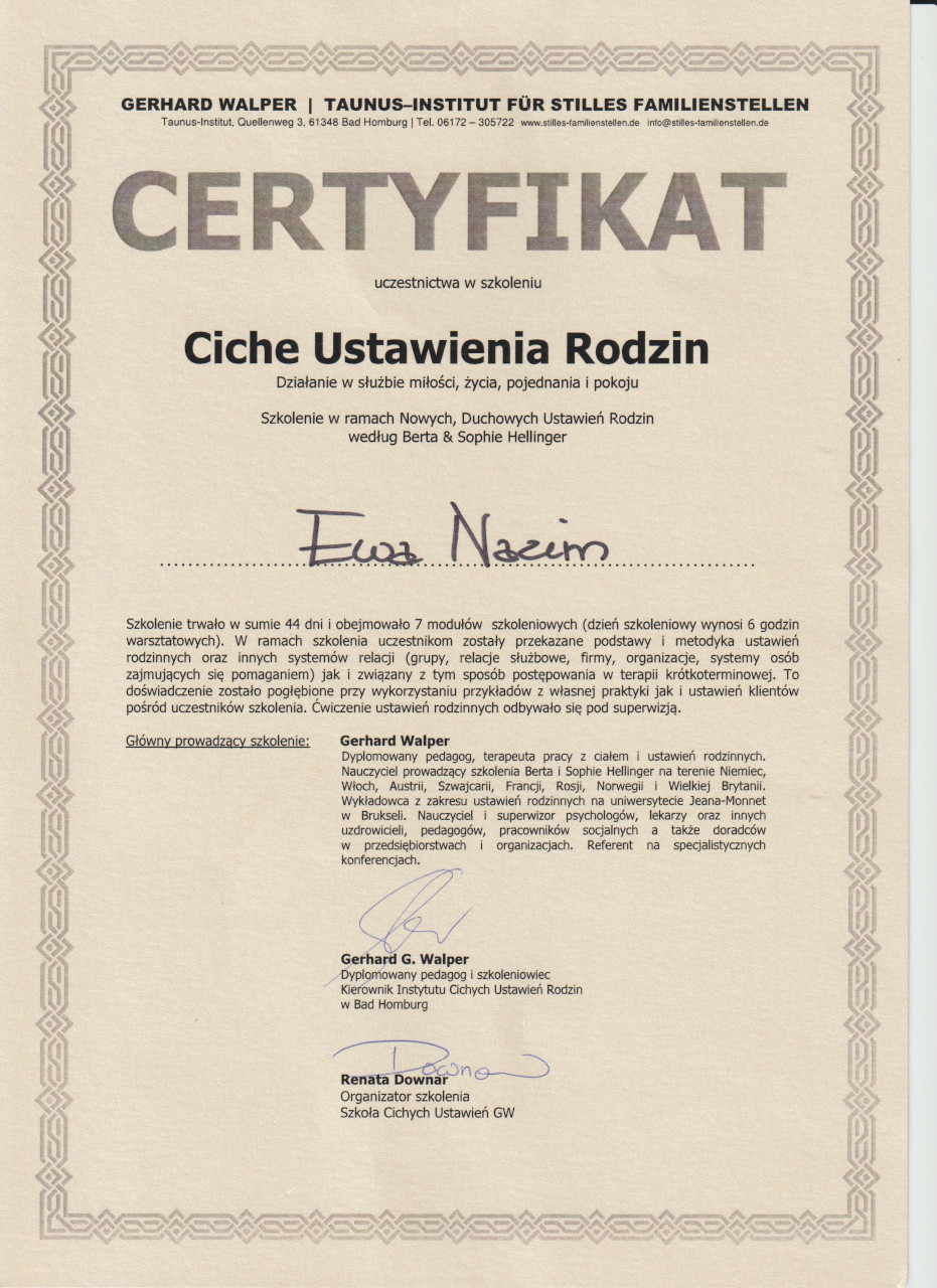 Bioenergoterapeutka, Terapeutka Ustawień Systemowych & Integracji Oddechem